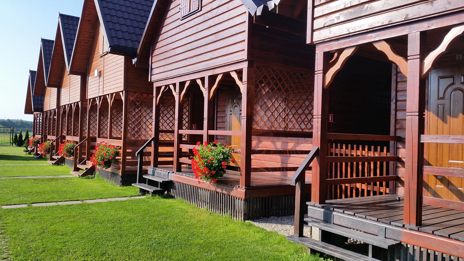 Kameralne domki usytuowane są około 380 m od morza. Przed każdym domkiem znajduje się taras z krzesłami i stołem tarasowym oraz grillem. Posesja jest bezpieczna dla dzieci, ogrodzona płotem. Posiadamy piaskownicę, huśtawki i zjeżdżalnię.